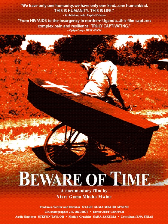From the rolling hills of Kampala to the internally displaced people's camps in Gulu, Beware Of Time is a haunting and poignant documentary, which exposes the attitudes of HIV positive Ugandans, as well as the crimes and hardships of a quiet, but brutal war ravaging the people of Northern Uganda. Traversing through the country's back roads, the filmmaker, Ntare Guma Mbaho Mwine discovers conflict and contradiction as experienced by HIV positive people, comes within close proximity to rebel fighting in northern Uganda, and along the way finds himself in conversation with Amule Amin - Idi Amin's brother.